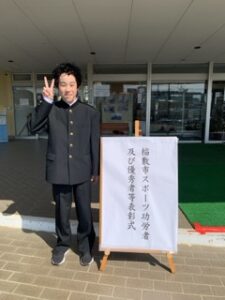 まずは、当クラブの選手である加賀陽翔選手です。 加賀選手は、昨年の全国大会での活躍が認められ、今回の受賞となりました。